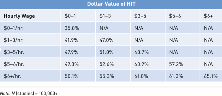 Table 1. The percentage of superworkers in study samples based on the compensation offered for each HIT and the HIT pay rate.